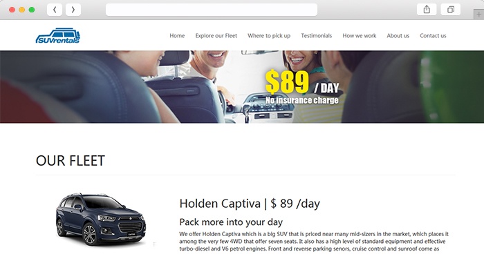 SUV rentals offering various car on a rent basis. Choose a car as per your requirement. You can able check prices on hourly as well as on full day basis. Read all term and conditions while hire a SUV and rest assure. SUV rentals offers each car with very transparent process.